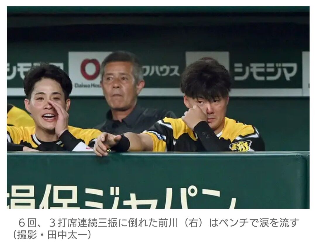 阪神の前川がベンチで人目をはばからず涙を流した。